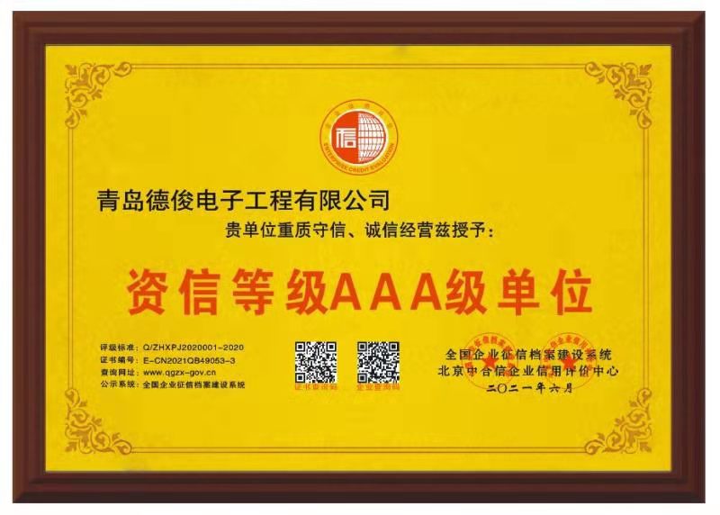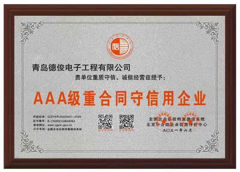 2、AAA級(jí)重合同守信用企業(yè)