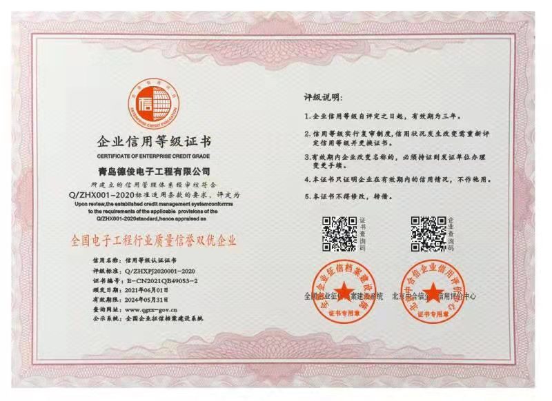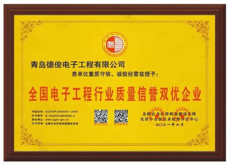3、全國電子工程行業(yè)質(zhì)量信譽(yù)雙優(yōu)企業(yè)