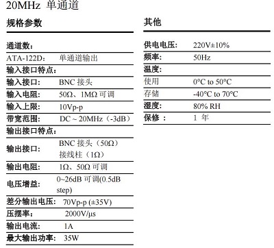 ATA-122D是一款理想的可放大交、直流信號的單通道寬帶放大器。差分輸出70Vp-p (±35V)電壓,輸出電流1A,可與主流的信號發(fā)生器配套使用,實現(xiàn)信號的完美放大。并且具有50Ω、1MΩ兩檔輸入電阻可選,完美匹配高低內(nèi)阻信號源。