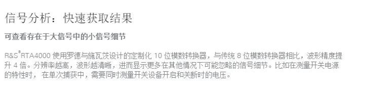 R&S®RTA4000 信號完整性和超大深存儲,將“十”力鉅獻(xiàn)提高到高水平。羅德與施瓦茨專門設(shè)計(jì)的10 位 ADC 具備低噪聲性能和高存儲深度,在遇到意外測量挑戰(zhàn)時(shí)可以生成高保真波形,確?梢钥焖贉(zhǔn)確地進(jìn)行測量。