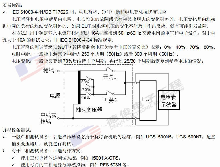 電壓暫降、短時中斷和電壓變化抗擾度試驗方案